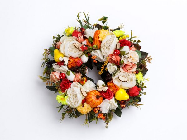 Základ tvorí venček z hrubšieho prútia. Celý venček je bohato zdobený umelými (textilnými) kvetmi vo farbách vo farbách jesene, umelými zelenými lístočkami, plodmi jesene (tekvičky, hrušky, bobule, huby) a malými drevenými výrezmi. Všetky kvety a lístočky sú lepené tavnou pištoľou, čo zaručuje, že držia pevne na mieste a neodlepujú sa.