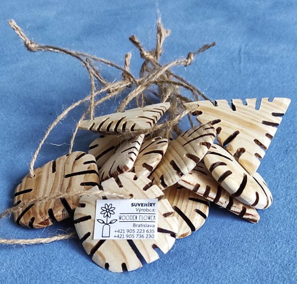 Drevené ozdôbky na stromček. Balenie obsahuje 10 ks.